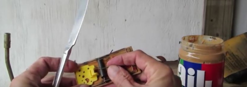 • Spread the peanut butter over the spring mechanism of the trapping device